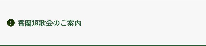 | 香蘭集 | 新入会員は「香蘭集」に属する会員として受け入れます。作品(詠草)送付は編集部宛。4首ないし5首が掲載されます。 (年会費:12,000円。但し入会時は12月までの月数×1,000円) |